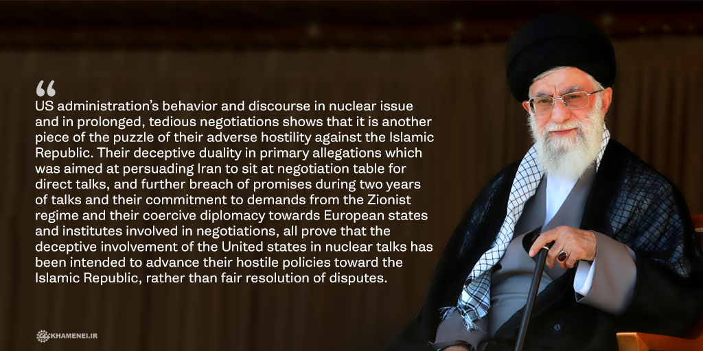 The Supreme Leader's perspective and actions towards this nuclear deal exemplify how wary Iran is to work and cooperate with nations on an international stage. The Supreme Leader often expresses the hostilities that exist between America and Iran, and how JCPOA is another way for the US to "advance their hostilities toward Iran," (Twitter).